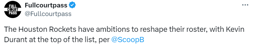 曝杜兰特是火箭引援首选目标!与教练组关系密切 独行侠公牛也想追他