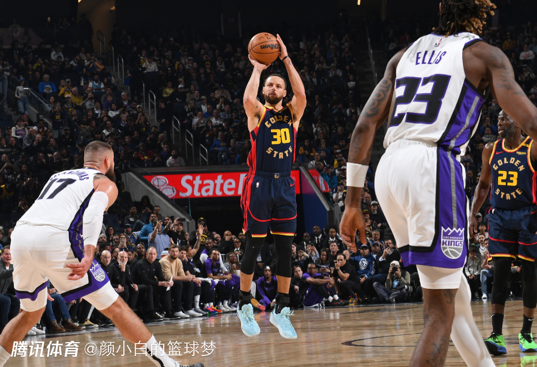 国王这场比赛为了扼制库里的三分外线出手,让基根-穆雷box one贴着库里,也就是半场4打4,结果这让库里整个上半场三分2中1只拿到5分,库里的纪录迟迟没有到来。