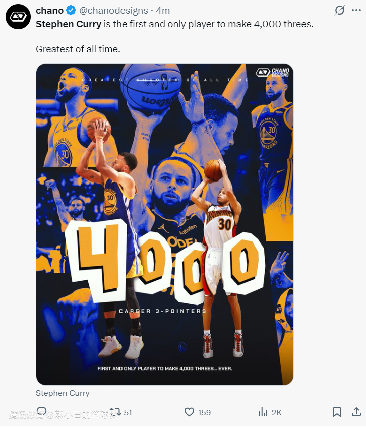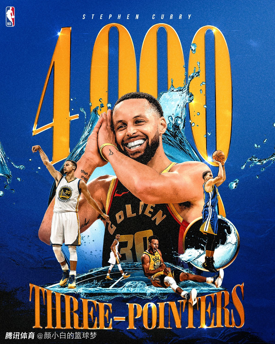 全球的媒体都制作了庆祝库里这4000三分里程碑的海报。