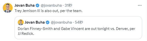 2025-03-15 08:20北京时间3月15日,NBA常规赛继续进行,湖人队对阵掘金队。赛前,湖人队主教练JJ-雷迪克接受媒体采访,透露除了詹姆斯和东契奇之外,湖人队此役将又有3名球员缺席比赛,他们是芬尼-史密斯、文森特和杰米森。