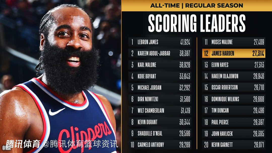 里程碑!哈登生涯总得分超埃尔文-海耶斯 升至NBA历史第12位