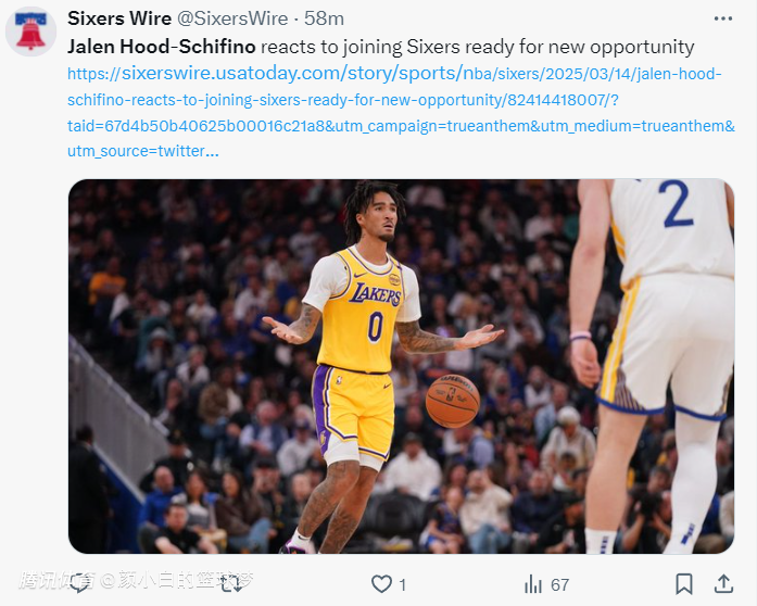 费城媒体也庆祝湖人旧将在费城登场,只可惜他上半场打了8分47秒,4中0+三分2中0拿0分1篮板0助攻0抢断0盖帽,他个人表现还是不佳,但球队半场领先步行者。