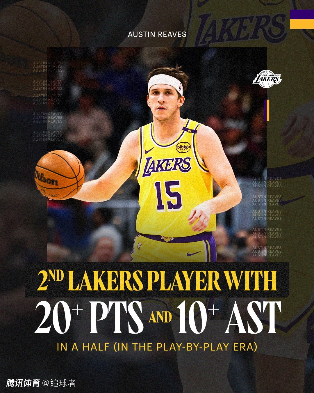 1、里夫斯成为湖人队史第一位半场至少拿到20分10助攻5篮板的球员