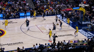 第二节,湖人进攻明显下滑,当湖人落后到两位数时,克内克特三分止血,里夫斯扛着约基奇打成2+1,突破强硬上篮以及迎着约基奇轰进三分,短短56秒,里夫斯连得8分带队保持悬念,半场打完湖人67-71落后掘金4分。