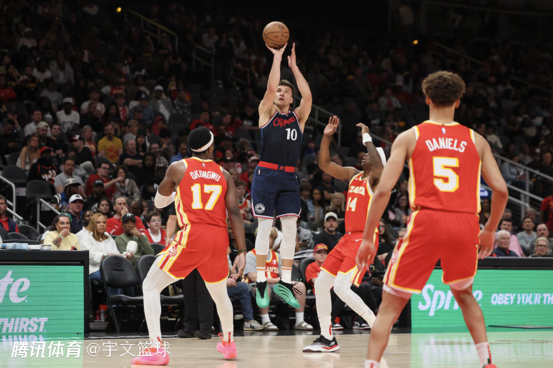 老鹰5人上双,奥孔古18分10篮板3盖帽,特雷-杨17分4篮板7助攻,里萨谢15分7篮板,勒维尔12分4篮板,巴洛10分4篮板