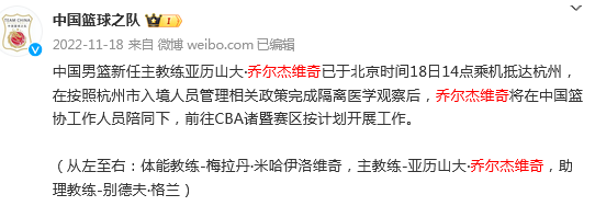 2022年的11月18日,中国男篮官宣乔尔杰维奇成为主教练之外,也有2个助理教练员,分别是体能教练-梅拉丹·米哈伊洛维奇,助理教练-别德夫·格兰)