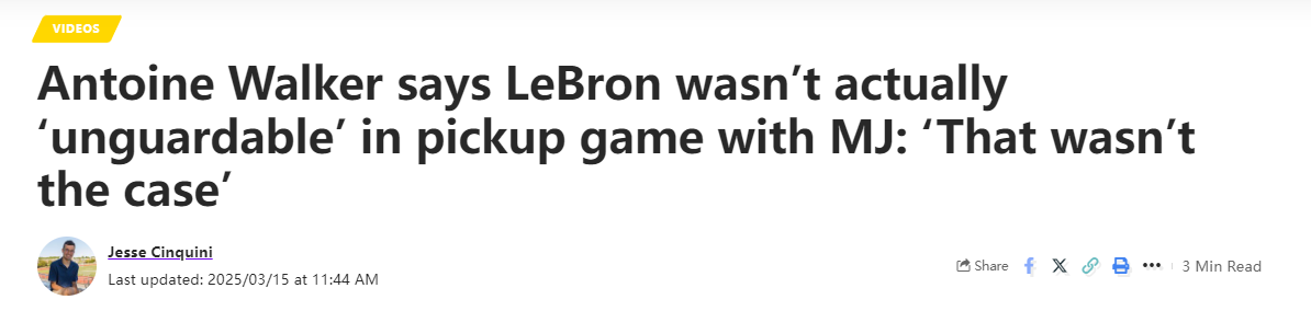 然而,作为现场见证者之一的安托万-沃克,在近日的播客上表示,詹姆斯讲述这段经历时可能有所夸大。沃克称,詹姆斯并非无人能防,不过他也承认当时的詹姆斯看上去 “确实很有潜力”。