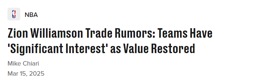 曝多队有浓厚兴趣交易锡安!当前体型生涯最佳 合同还剩3年1.27亿