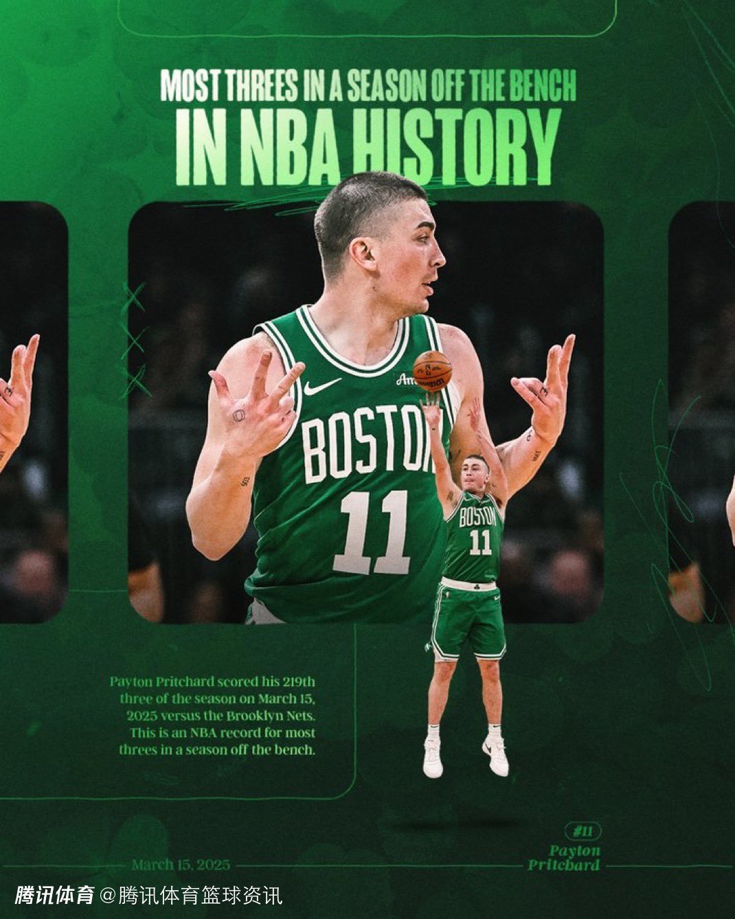 2025-03-16 08:30北京时间3月16日,凯尔特人客场115-113战胜篮网,普里查德得到22分6篮板3助攻5三分。算上这场比赛的5记三分,普里查德本赛季的替补登场命中的三分数已经达到220个,打破了此前艾灵顿保持的218个的历史替补纪录。