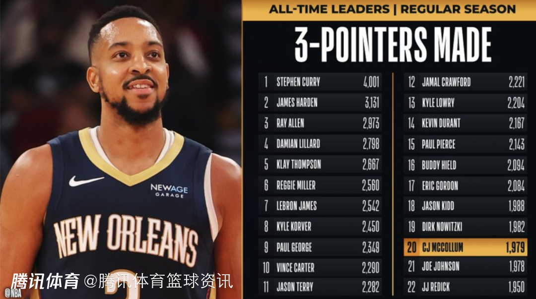 里程碑!CJ三分球总命中数超乔-约翰逊 升至历史第20位