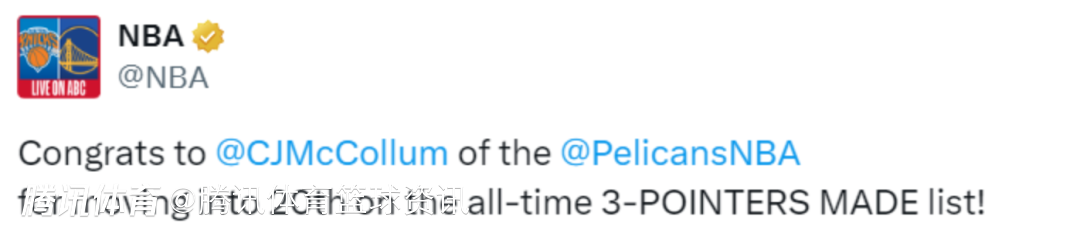 2025-03-16 10:30北京时间3月16日,NBA常规赛,鹈鹕客场挑战马刺,本场比赛鹈鹕后卫CJ-麦科勒姆迎来里程碑,让自己的三分球总命中数跻身历史前20位。
