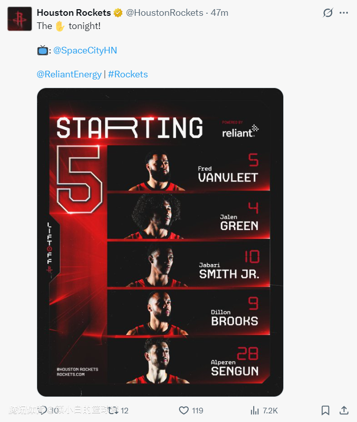 背靠背第二场伊森按照惯例轮休,阿门、谢泼德伤停,小贾重返先发阵容。