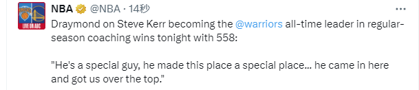 值得一提的是,本场比赛最后时刻,格林曾突破唐斯打进关键球,在进攻得手后,格林还做出了库里标志性的“晚安安”庆祝动作。