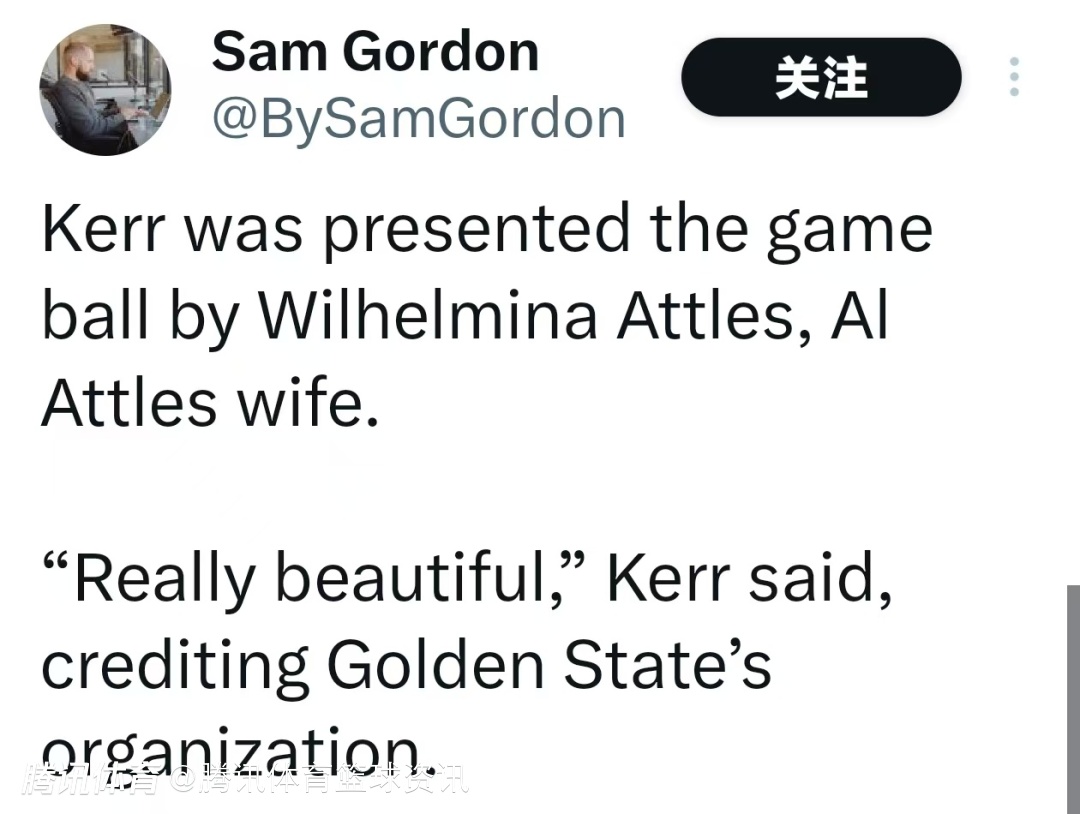 2025-03-16 13:00北京时间3月16日,NBA常规赛继续进行,勇士97-94击败尼克斯,取得7连胜。与此同时,这也是科尔执教勇士常规赛第558胜,超越阿尔-阿特尔斯,升至队史第一。比赛结束后,勇士工作人员做了一个温馨的安排,阿尔-阿特尔斯的妻子将比赛用球交给了科尔,众人一起合影留念。科尔在赛后的新闻发布会上也提到了此事。