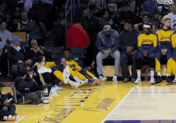 詹姆斯来到场边看球,布朗尼只能坐到地板上了。