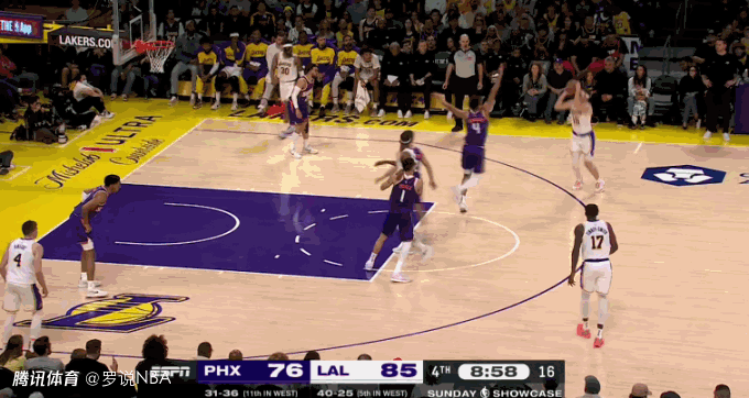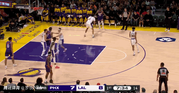 末节,里夫斯抛投命中,邓恩抢断扣篮,琼斯三分命中,里夫斯打成3+1。吉莱斯皮、芬尼-史密斯互飙三分。科迪-马丁补篮打成2+1,东契奇连得5分。杜兰特中投命中,布克扣篮,邓恩连得6分,太阳还落后8分。芬尼-史密斯三分命中,布克上篮命中,芬尼-史密斯补篮得分。最终,湖人主场战胜太阳,终结4连败。