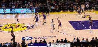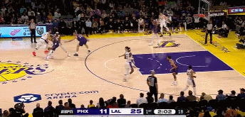首节比赛中,东契奇外线手感出色,他的6次出手有5次为外线投篮,并且在左侧45度和弧顶命中三记三分,单节轰下13分3助攻,带领湖人队建立了16分领先优势。次节比赛中,东契奇仅有两次出手,他命中一次上篮,并且在罚球线上两罚全中,单节再次拿到4分3篮板3助攻的全面表现。