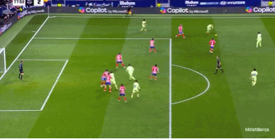 埃里克-加西亚、费兰出场,换下卡萨多、奥尔莫,巴萨的进攻更为激进,增强压迫性,加西亚踢后腰,拉菲尼亚前腰,佩德里尽量压上,费兰在左翼,巴萨孤注一掷。