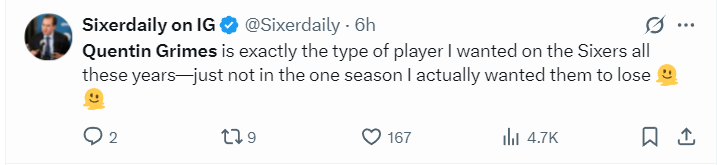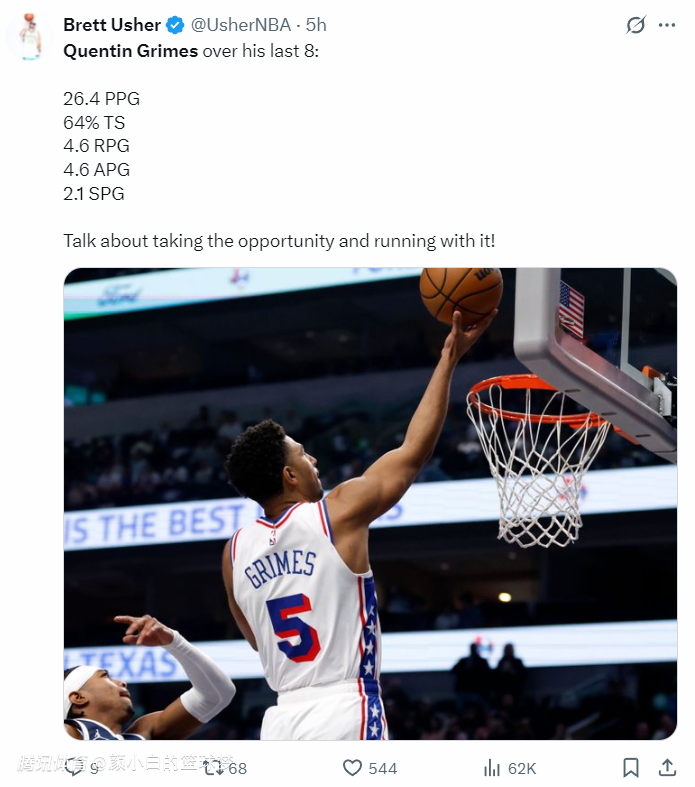 费城记者:格兰姆斯正是我一直希望能得到的那种球员,只是我不希望在如此惨烈的一个赛季里出现。