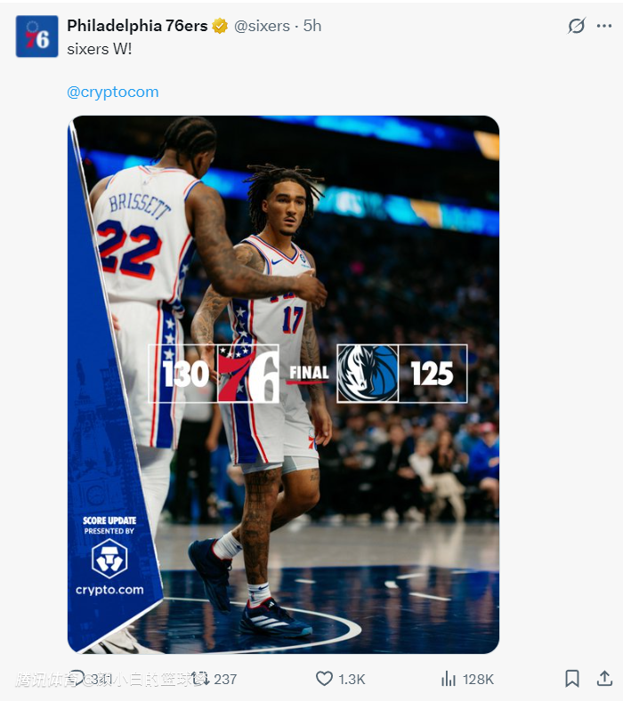 2025-03-17 09:20北京时间3月17日,NBA常规赛,费城76人以130-125击败达拉斯独行侠,这场比赛是在独行侠主场进行,换言之昆廷-格兰姆斯故地重游了,这是大交易后格兰姆斯首次回到达拉斯,结果格兰姆斯手刃旧主了。