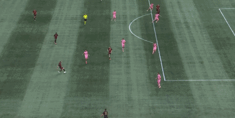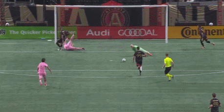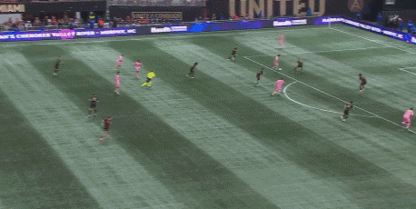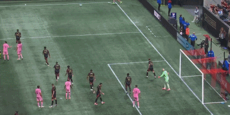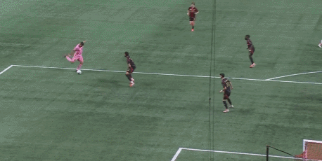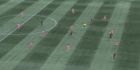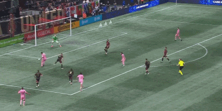 第20分钟,古赞扑救脱手,亚特兰大联防线连续出现失误,梅西抢断得球后带球晃开防守,最后近距离面对出击的古赞挑射得手,迈阿密国际扳平比分,1-1。