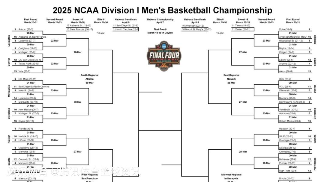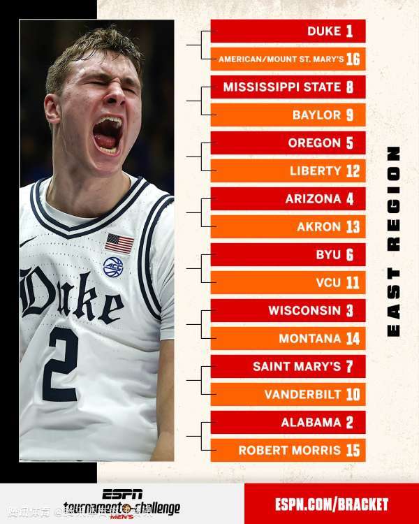 疯狂三月!NCAA锦标赛64队对阵表出炉:弗拉格率杜克大学冲冠