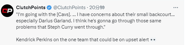 帕金斯说道:“我支持骑士队,但我对他们矮小的后场阵容感到担忧,尤其是加兰。我认为,他会经历斯蒂芬-库里曾经遭遇过的那些问题。”而在节目中,也播放了一些加兰被对手错位单打的画面。