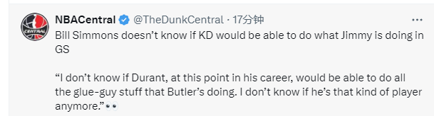 美记:在生涯这个阶段 不知道杜兰特还能否像巴特勒那样打球