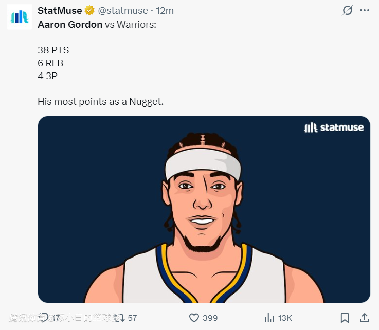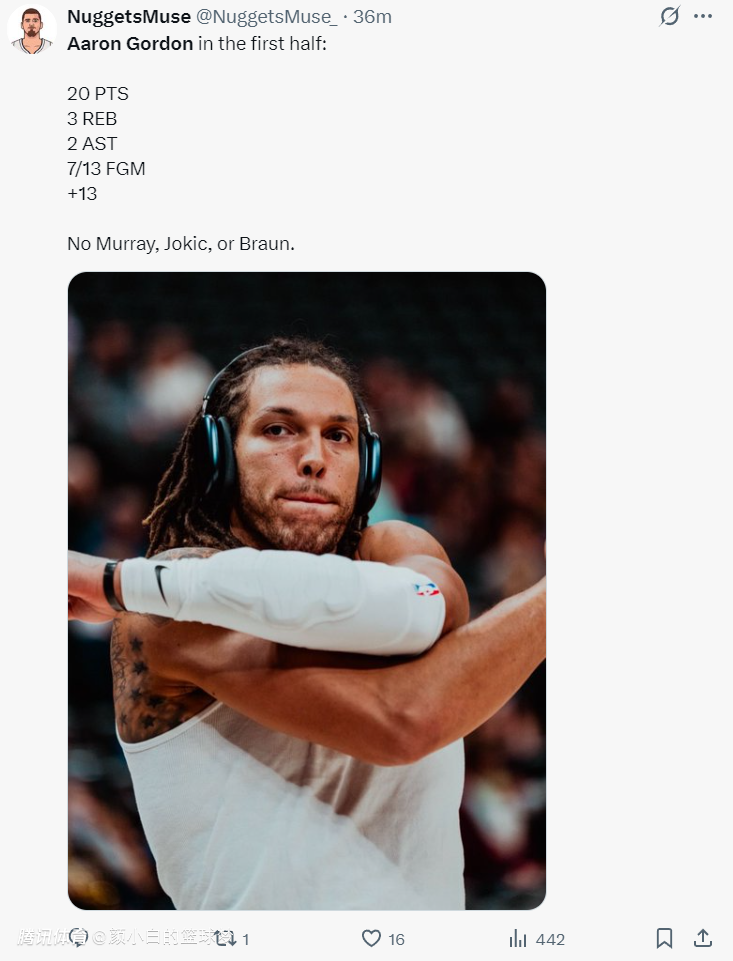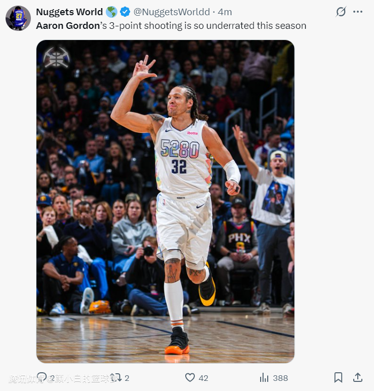轰38+6赢掘金生涯之夜!戈登一人击毁死亡五小 美媒:外线被低估