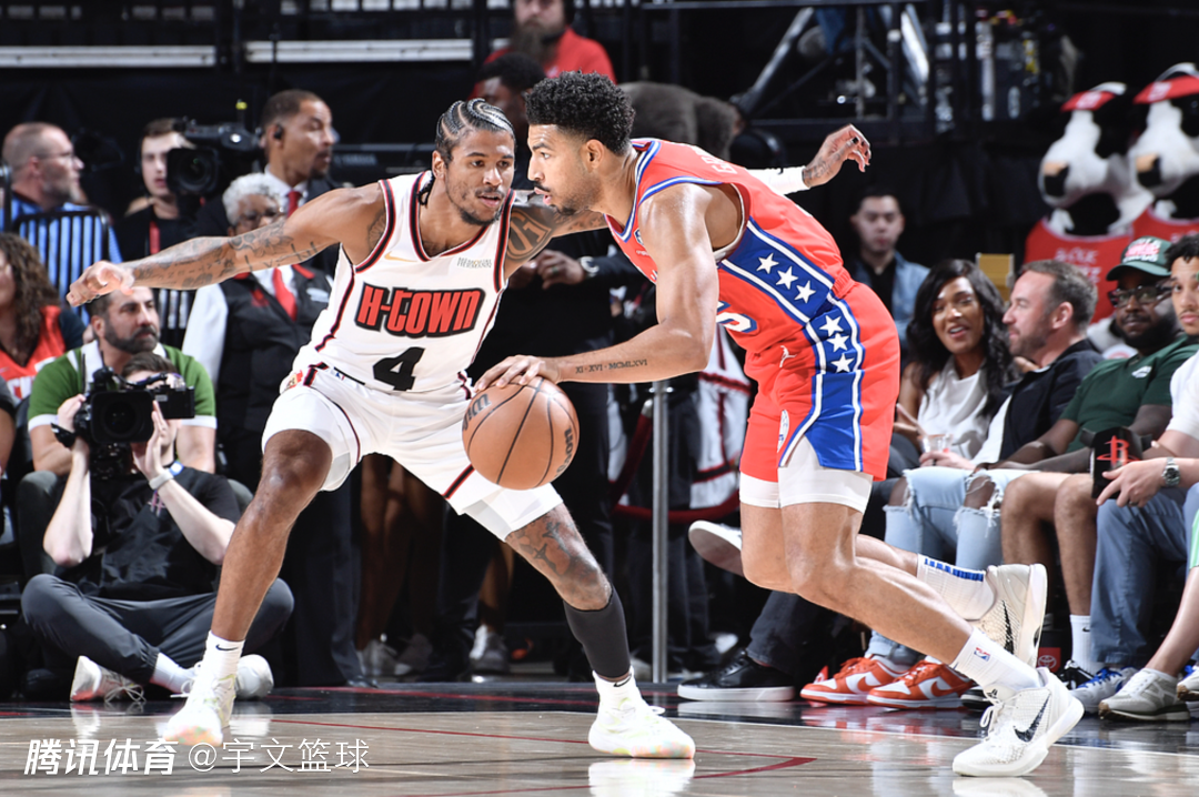 末节,76人10-0一波流拉开分差,暂停回来,泰特和格林连中3记三分助火箭缩小分差,巴特勒突破上篮,泰特跟进上篮,格林造犯规两罚全中,巴特勒再次突破得分;比赛还剩3分52秒,伊森吃到第6犯后抱怨吃T还被驱逐,格雷姆斯罚球得分,小史密斯和狄龙连中续命三分,生死时刻范乔丹不满判罚,凶狠放倒对手,范乔丹吃到二级恶意犯规直接被驱逐离场;布里塞特两罚一中,格雷姆斯命中关键三分,格林和史密斯继续带队追分,生死时刻格林突破上篮以及抢断,76人采用点球战术,史密斯第一罚命中,第二罚故意罚丢,申京补篮绝平,3.9秒席菲诺错失绝杀,两队131平打进加时。