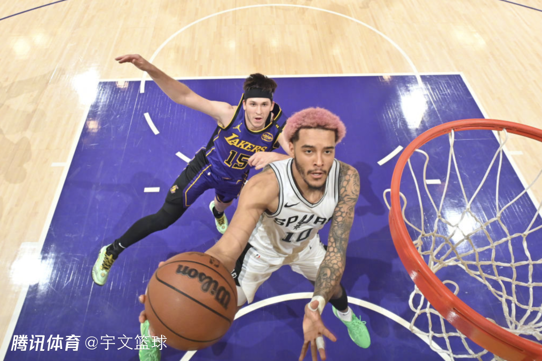 次节比赛开始,范德尔比特突破扣篮,巴恩斯冲筐回应,里夫斯急停跳投,比永博漂移投篮。克内克特连得5分,比永博和瓦塞尔连得5分回应,芬尼-史密斯三分命中,瓦塞尔罚球得分。两队交替得分,湖人始终维持分差在双位数,东契奇2罚1中,瓦塞尔三分命中,海耶斯连得4分,索汉空切暴扣。文森特三分命中,东契奇罚球得分,卡斯尔连得5分,东契奇补篮打进。约翰逊突破抛投,古德温勾手得分。半场比赛结束,马刺51-65落后湖人。