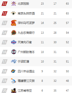 CBA最新排名:前12名正式确定 南京锁定尾班车 多队即将进入卡位大战