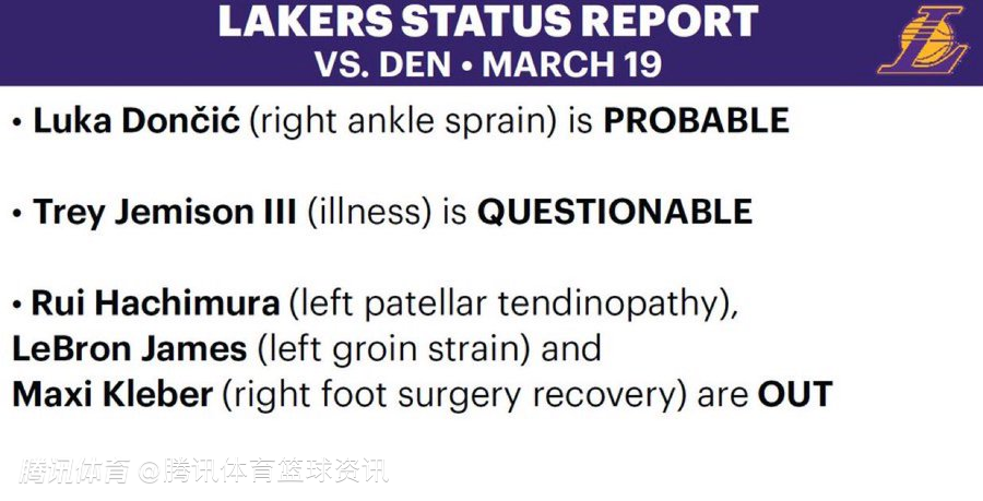 湖人vs掘金伤病报告:东契奇大概率出战 詹姆斯继续缺席