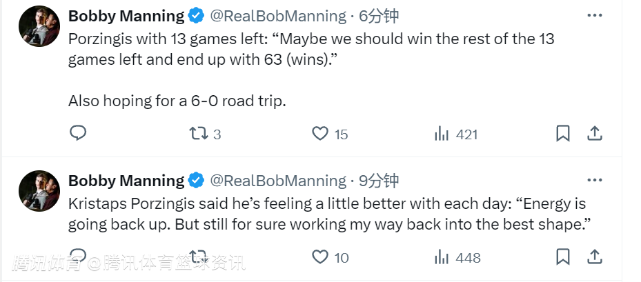 关于自己的伤情,波尔津吉斯称自己每天都感觉好一点了:“精力正在恢复。但肯定还在努力让自己回到最佳状态。”
