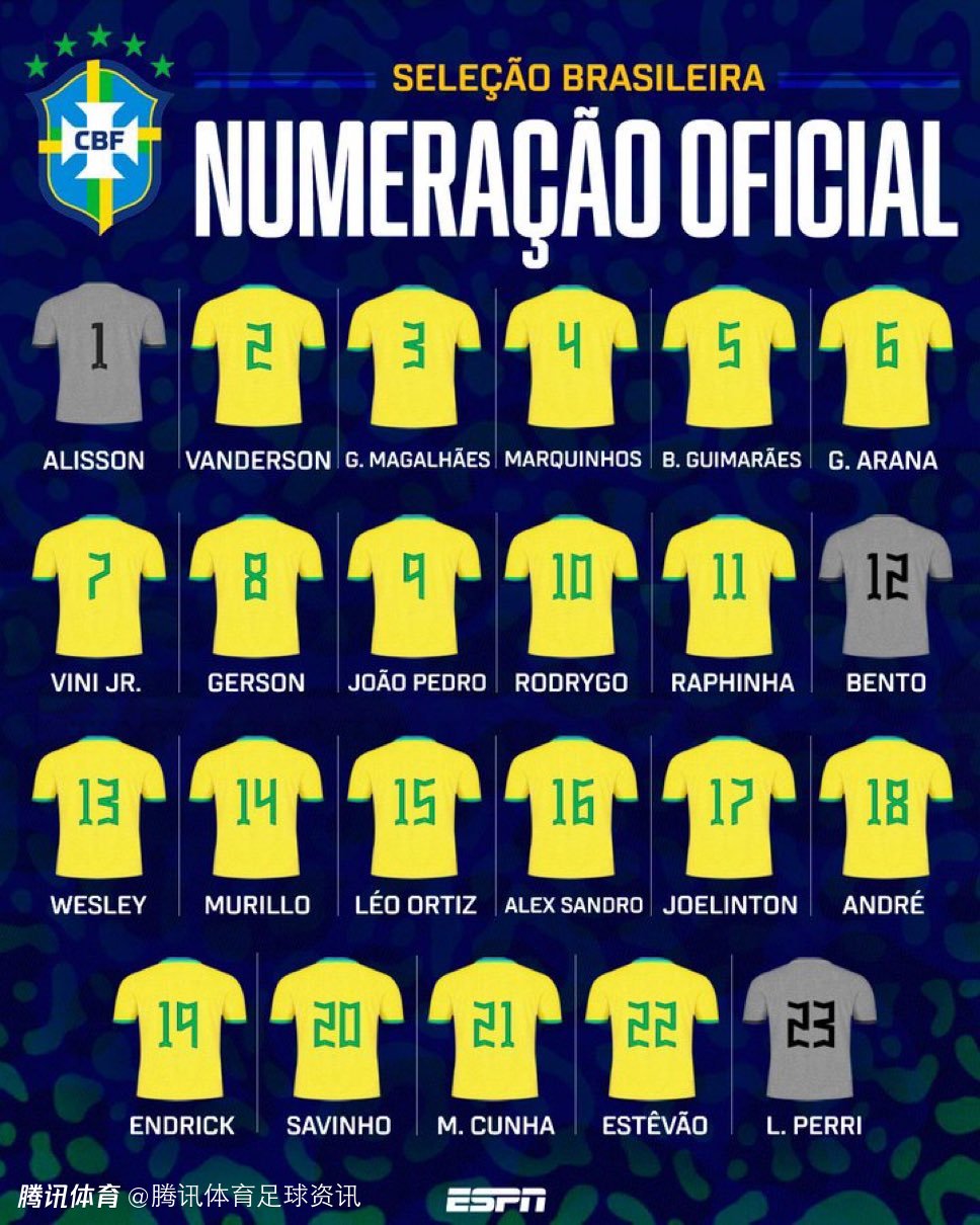 前锋:22-埃斯特旺(帕尔梅拉斯)、9-若昂-佩德罗(布莱顿)、7-维尼修斯(皇马)、10-罗德里戈(皇马)、11-拉菲尼亚(巴萨)、20-萨维尼奥(曼城)、19-恩德里克