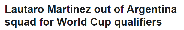 劳塔罗加入了阿根廷不断增加的缺席球员名单,其中包括因肌肉拉伤而缺阵的队长梅西,以及蒙铁尔、洛塞尔索和迪巴拉。