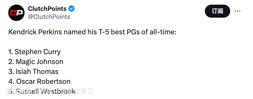 2025-03-20 12:00北京时间3月20日,近日,现ESPN评论员帕金斯在节目中谈到了自己心目中的历史前五控卫,库里高居第一,威少在列。