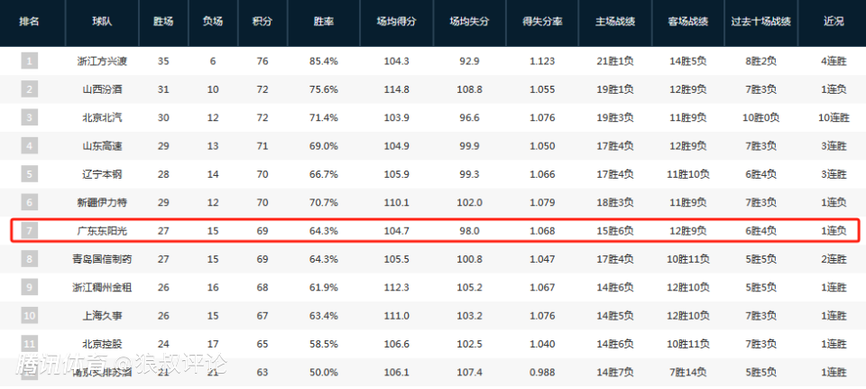 CBA观察|广东爆冷不敌南京跌至第七,这是杜锋理想的位置吗?