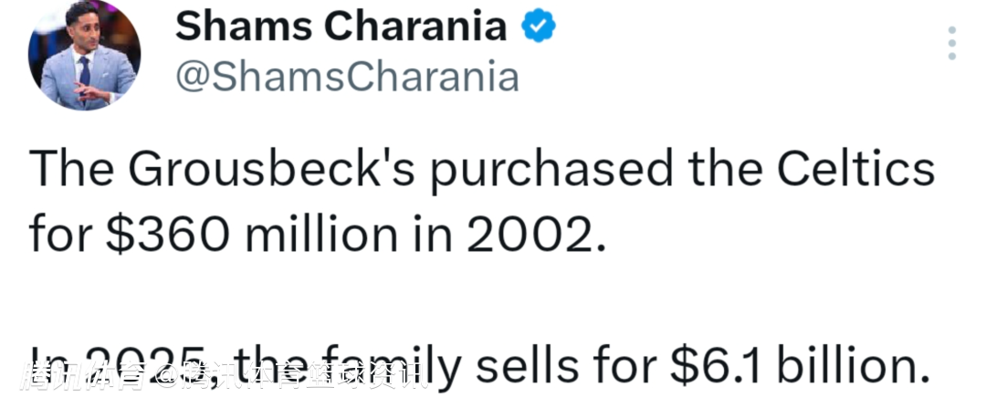 Shams:凯尔特人以61亿美元估值成交 创北美职业体育运动队出售纪录