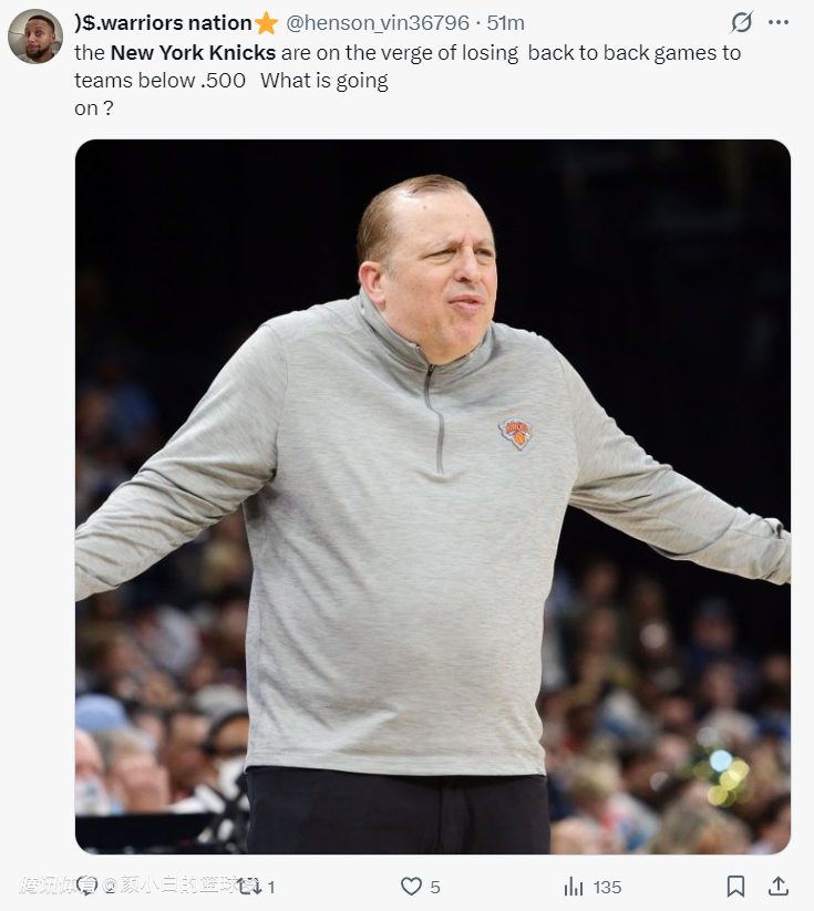 尼克斯球迷上传一张锡伯杜的图后写道:纽约怎么了?连续输给两支胜率不足50%的球队。