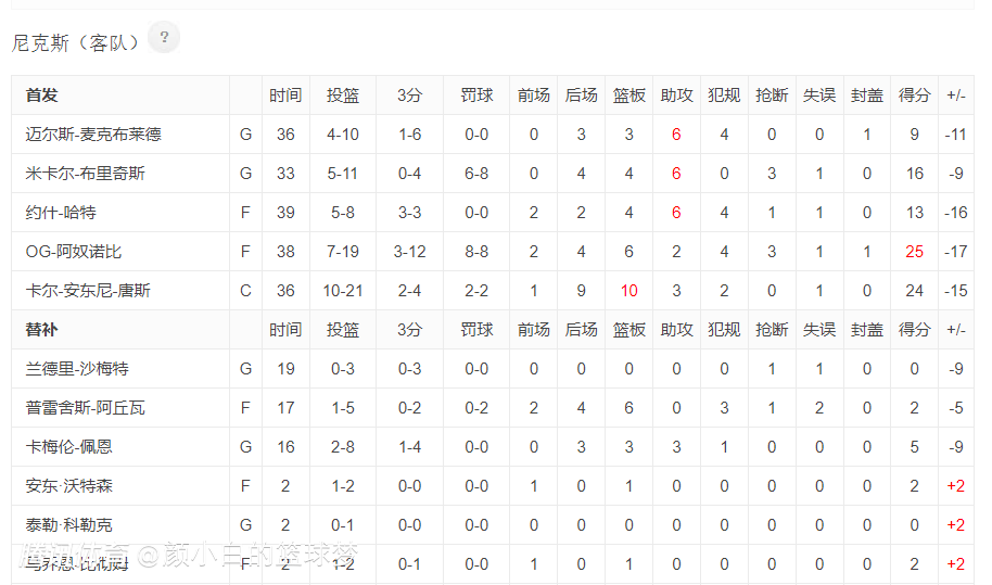 对阵黄蜂一战也被打到毫无悬念,黄蜂上第三阵容,就这样唐斯都打了36分钟,哈特39分,登场最少得大桥都有33分钟。