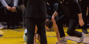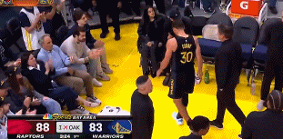 比赛第三节还剩下3分多钟的时候,库里在一次上篮过程中受伤倒地,不过裁判并未叫停比赛,猛龙在拿到防守篮板后,本有5打4的机会,但球队主帅拉贾科维奇却绅士地叫了一个暂停,随后库里自己慢慢起身,返回了更衣室。