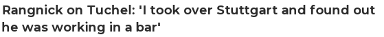 “很明显,他不属于酒吧,他更愿意和球队在球场上。图赫尔是个非常聪明、有涵养的人,他在斯图加特学的是体育专业。显然,他具备成为一名成功教练所需的诸多特质。”