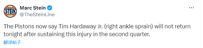 2025-03-22 10:10北京时间3月22日,NBA常规赛继续进行,独行侠队对阵活塞队。上半场比赛结束,独行侠队60-54领先活塞队6分,而在被交易后首次返回达拉斯的小哈达威,则因为在第二节比赛中右脚踝扭伤,将退出本场比赛。
