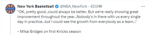 2025-03-23 07:50北京时间3月23日,尼克斯球员米卡尔-布里奇斯接受媒体采访,谈到了自己在尼克斯首个赛季的征战感受。