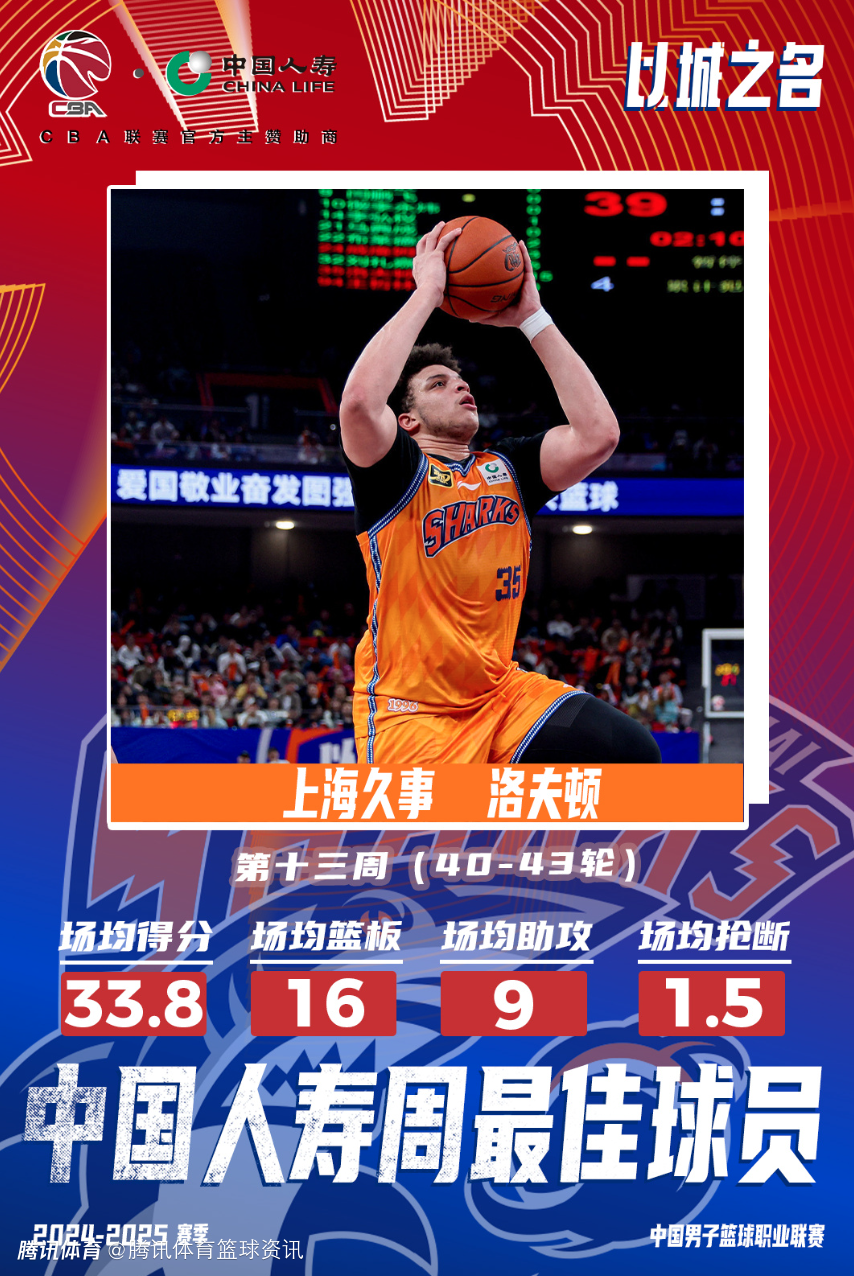 【洛夫顿当选第十三周中国人寿周最佳球员】