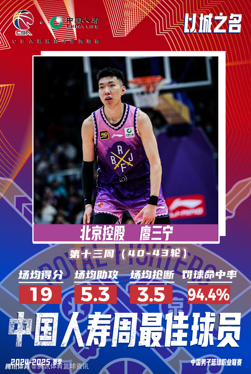 【廖三宁当选第十三周中国人寿周最佳球员】