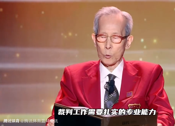 郭玉佩当初一心参加抗美援朝而进入军校学习无线电技术,机缘巧合之下被调到八一篮球队,最终成为一名优秀篮球裁判员,他在台上先是打趣说道:“巩晓彬,当年你第一次代表国青队出去打比赛,我就看出你有潜质。”