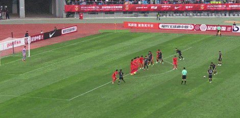 第35分钟,鲍盛鑫操刀主罚禁区左侧任意球送到门前,被文炫浩出击将球没收。