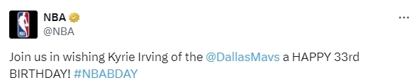 2025-03-24 08:20北京时间3月24日,独行侠球员欧文今日迎来自己33岁生日,NBA官方、独行侠队官方和欧文的诸多好友都为他送上祝福,其中就包括已经被交易到湖人队的东契奇。